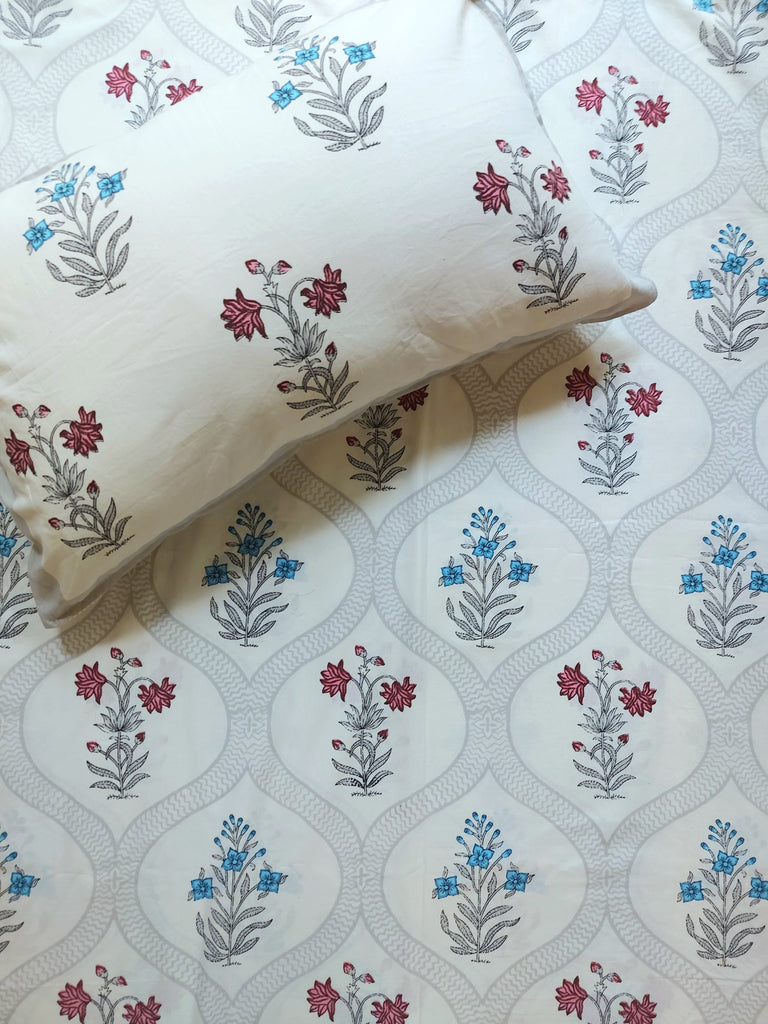Immerse yourself in the timeless elegance of our Baagh Bedsheet Set, designed to bring the beauty and tranquility of nature into your home. Adorned with intricate floral prints, these bedsheets echo the charm of a lush Mughal garden, creating a serene and inviting atmosphere. The harmonious blend of vibrant yet soothing colors enhances the aesthetic appeal of your space, making it a perfect retreat after a long day.