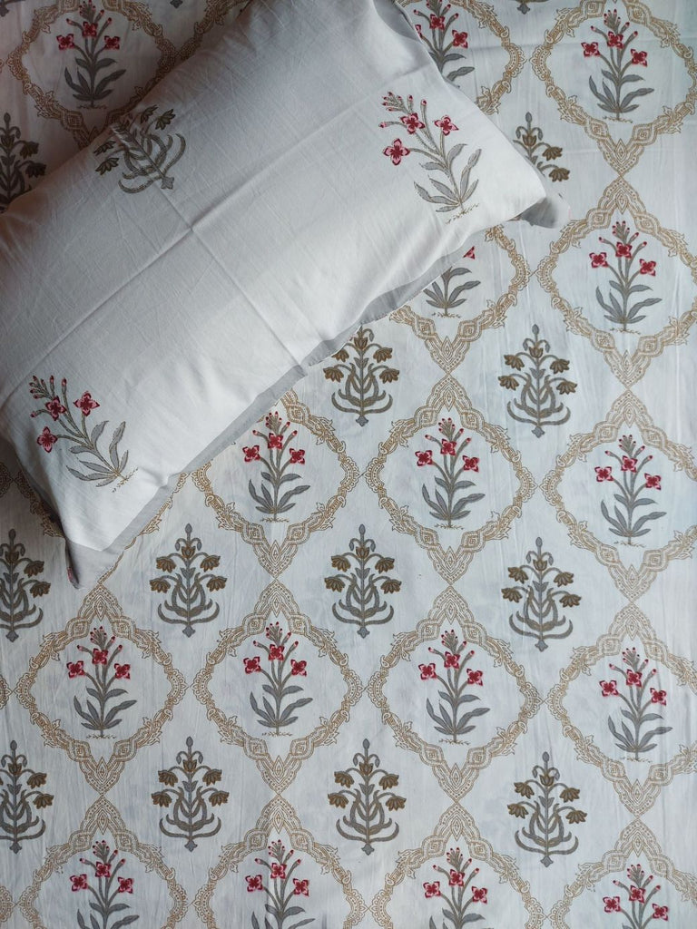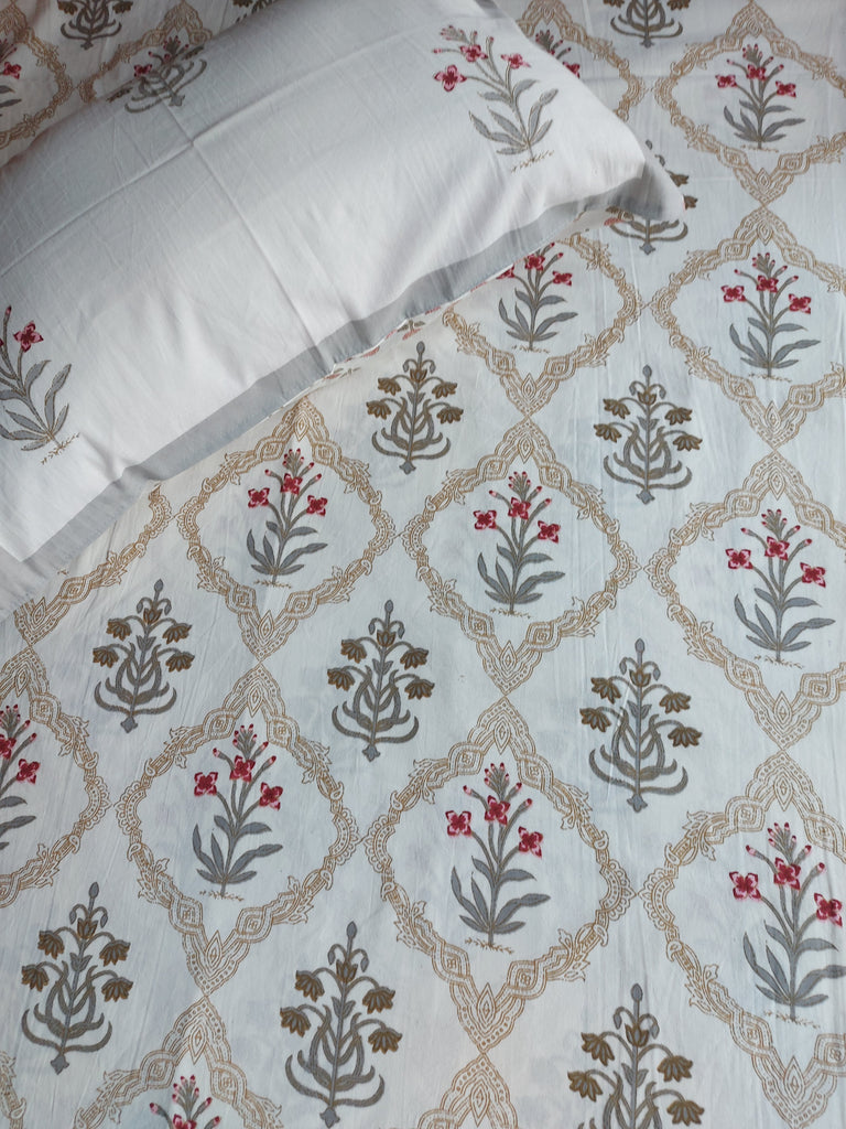 Indulge in the perfect blend of sophistication and comfort with our Mughal Bagan Bedsheet Set—where tradition meets tranquility. 🌿✨