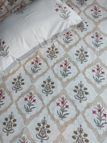 Immerse yourself in the timeless elegance of our Baagh Bedsheet Set, designed to bring the beauty and tranquility of nature into your home. Adorned with intricate floral prints, these bedsheets echo the charm of a lush Mughal garden, creating a serene and inviting atmosphere. The harmonious blend of vibrant yet soothing colors enhances the aesthetic appeal of your space, making it a perfect retreat after a long day.