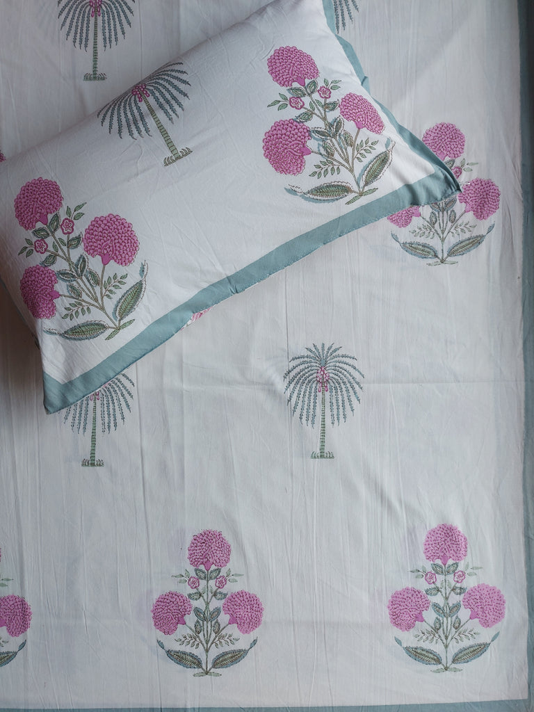 Immerse yourself in the timeless elegance of our Baagh Bedsheet Set, designed to bring the beauty and tranquility of nature into your home. Adorned with intricate floral prints, these bedsheets echo the charm of a lush Mughal garden, creating a serene and inviting atmosphere. The harmonious blend of vibrant yet soothing colors enhances the aesthetic appeal of your space, making it a perfect retreat after a long day.